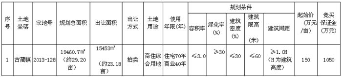 古藺縣國(guó)有建設(shè)用地使用權(quán)拍賣出讓公告